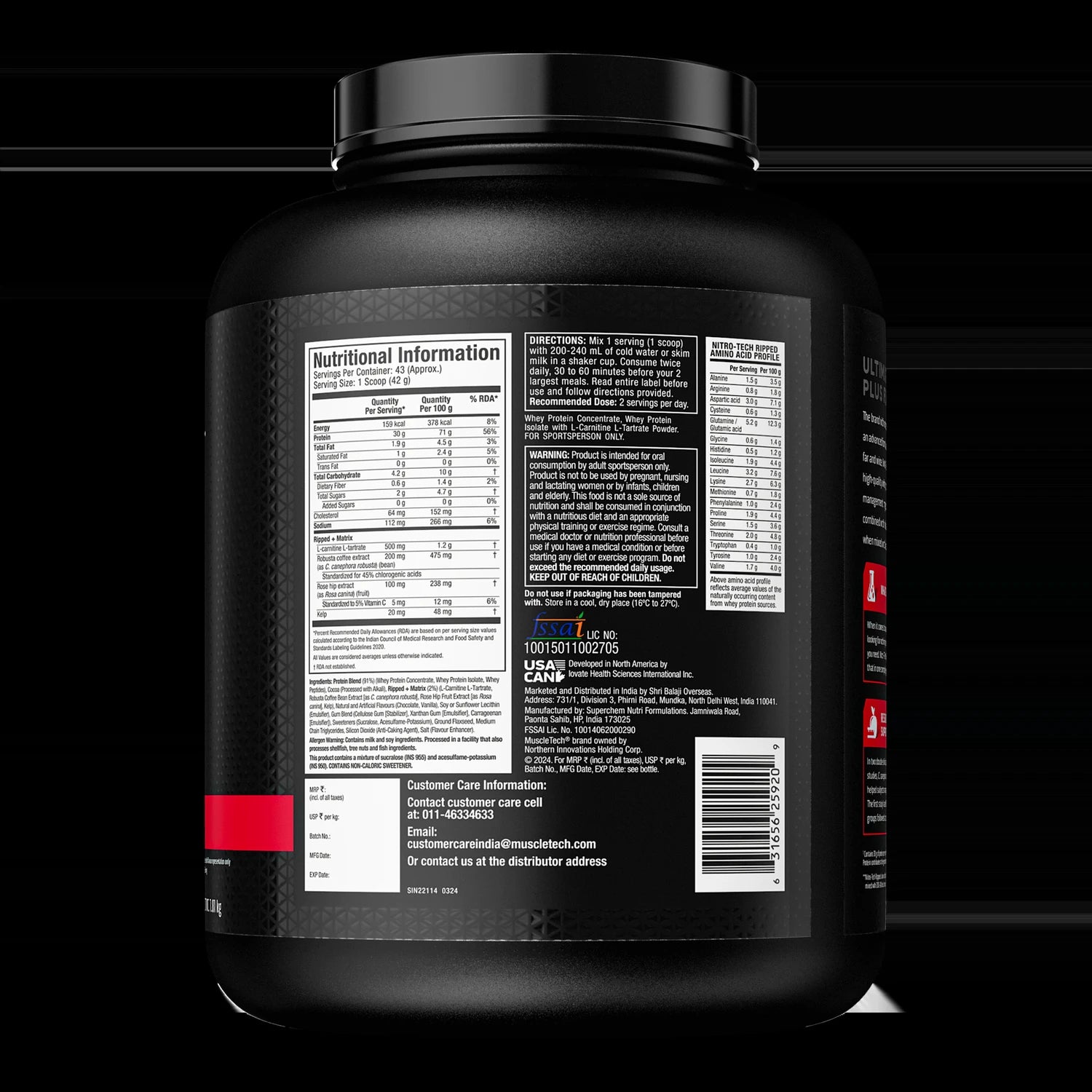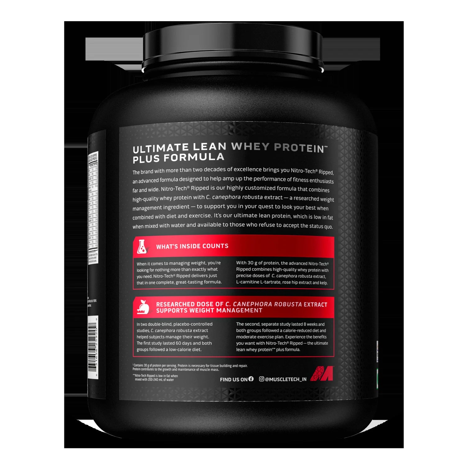 Fuel your fitness with 30g of premium whey protein from isolate and peptides, designed to build lean muscle. Nitro-Tech Ripped combines protein power with a unique fat-loss formula featuring C. canephora robusta, L-carnitine L-tartrate, CLA, rosehip extract, and MCT oil—all stimulant-free to support energy, performance, and recovery. Fast-absorbing, easy to mix, and available in delicious flavors, it's the perfect choice for serious athletes looking to stay ripped.